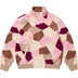 Cotton blend velour with patchwork pattern and poly tricot lining. Full zip closure with welt zip hand pockets at lower front. Knit rib cuffs and hem. Embroidered logo on chest.