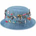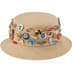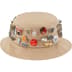 All cotton chino twill crusher with enamel pins and buttons at crown.