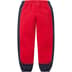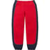 Brushed-back fleece with on seam hand pockets and single back patch pocket. Elastic waistband with interior drawcord and interior elastic shockcord at cuffs. Jacquard logo piping throughout.