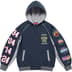 Brushed-back fleece with full zip closure. Double welt hand pockets at lower front and interior elastic shockcord at hood. Tackle twill appliqué with embroidery at chest, sleeves and back. Embroidered graphic on back hem.
