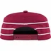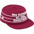 Poly pillbox hat with snap closure. Flocking printed graphic on front and sides.