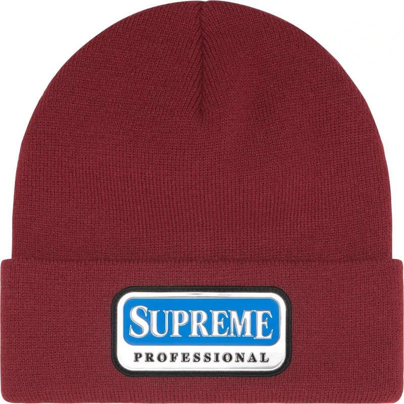 Acrylic cuffed beanie with metallic twill patch on cuff.