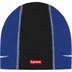 Acrylic beanie with embroidered logos on front and back. Raised embroidered graphics at sides.