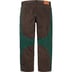 All cotton 13 oz. denim with embroidered graphic and loose fit. Classic 5-pocket style with zip fly, single coin pocket and leather logo patch on back.