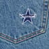 All cotton 13 oz. denim with enzyme wash. Classic 5-pocket style with button fly, single coin pocket, copper oxide rivets and embroidered logo on back pocket.