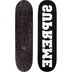 Supreme skate deck with natural veneer and black top ply. Printed logo on bottom with printed World Famous and box logo on top.