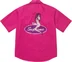 Cotton blend twill with utility pockets at chest. Embroidered logo on chest and rhinestone graphic appliqué at back.