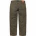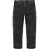 All cotton 13 oz. denim with paneled seam logo and loose fit. Classic 5-pocket style with zip fly, single coin pocket and leather logo patch on back.