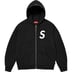 Heavyweight crossgrain brushed-back fleece with full zip closure and pouch pocket. Embroidered logos on chest and hood.