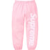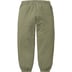 Brushed-back fleece with on seam hand pockets and single back patch pocket. Elastic cuffs and waistband with interior drawcord. Satin logo appliqué at left leg.