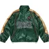 Poly satin with mesh lining and taffeta sleeve lining. Half zip closure with welt zip hand pockets at lower front and interior chest pocket. Interior elastic shockcord at hem and elastic cuffs. Tackle twill logo appliqué at chest. Embroidered patch on chest and printed graphic on back.