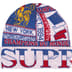 Acrylic cuffed beanie with jacquard knit logo pattern.