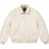 Lambskin leather with jacquard logo viscose lining. Full zip closure with double welt hand pockets at lower front and interior chest pocket. Removable leather hood with faux fur trim. Knit rib cuffs and hem. Debossed logo on chest. Made exclusively for Supreme.