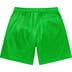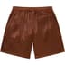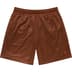 Poly eyelet mesh with mesh lining and baggy fit. On seam hand pockets and single back zip pocket. Elastic waistband with interior drawcord. Embroidered logo patch on thigh.