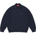 Wool blend with three-button placket and embroidered logo patch on chest.