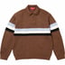Wool blend with three-button placket and embroidered logo patch on chest.