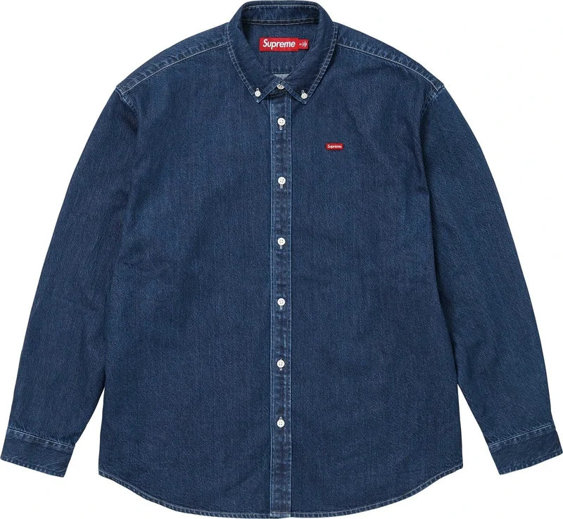 All cotton twill with button down collar. Embroidered logo patch on chest.