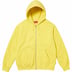 Brushed-back fleece with full zip closure and pouch pocket. Embroidered logo patch on chest.