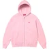 Brushed-back fleece with full zip closure and pouch pocket. Embroidered logo patch on chest.