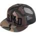 Poly 5-Panel hat with mesh back and snap closure. Flocking printed graphic on front and embroidered logo on back.