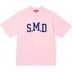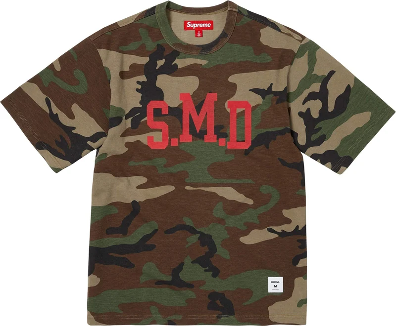 All cotton slub jersey crewneck with printed graphic on chest and athletic label at lower front.