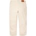 All cotton 13 oz. denim with baggy fit and enzyme wash. Full-leg side snap opening with jacquard logo taping. Classic 5-pocket style with zip fly, single coin pocket and leather logo patch on back.