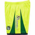 Poly jersey with on seam hand pockets and single back zip pocket. Interior drawcord at elastic waistband. Printed and embroidered graphics at lower front and sides.