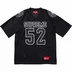 Poly eyelet mesh with printed logo on chest. Printed graphics on chest, shoulders and back. Athletic label at lower front.