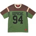 All cotton jersey crewneck with stripe rib panels at shoulders. Printed logo and graphic on front with athletic label at lower front.