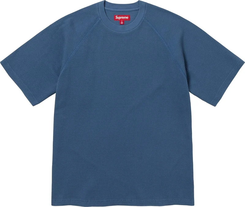 All cotton thermal crewneck with printed logo at back shoulders and sleeves.
