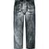 All cotton bull denim with garment dye treatment. Classic 5-pocket style with zip fly, single coin pocket, embroidered logos at thigh and Stone Island® patch on back pocket. Made exclusively for Supreme.