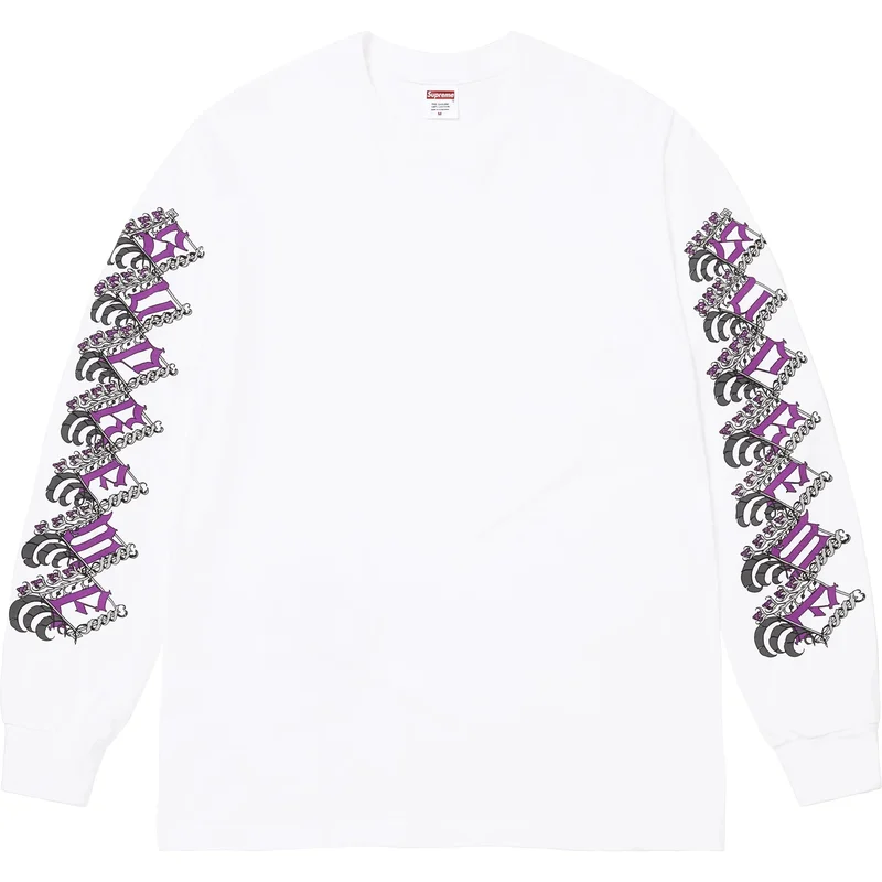 All cotton classic Supreme long-sleeve t-shirt with printed logos on sleeves and back hem.