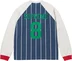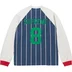 All cotton crewneck with knit stripe pattern. Printed logo and graphic on back. Athletic label at lower front.