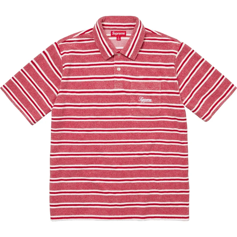 Cotton blend terry polo with two-button placket. Embroidered logo on single chest pocket.