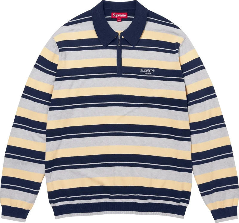 All cotton polo with half zip closure. Knit rib collar and embroidered logo on chest.