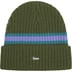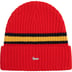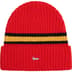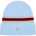 Cashmere cuffed beanie with metal logo plate at cuff.