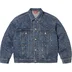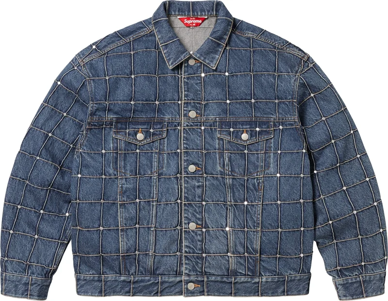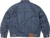 All cotton 13 oz. denim with pintuck pattern and metal studs throughout. Button front closure with on seam hand pockets and button flap patch pockets at chest. Tab adjusters at cuffs and back hem with leather logo patch.