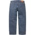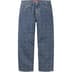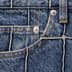 All cotton 13 oz. denim with pintuck pattern, metal studs and loose fit. Classic 5-pocket style with zip fly, single coin pocket and leather logo patch on back.