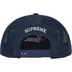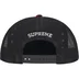 All cotton canvas 5-Panel hat with mesh back and snap closure. Rhinestones and metal studs at front and visor. Embroidered logos on front and back.