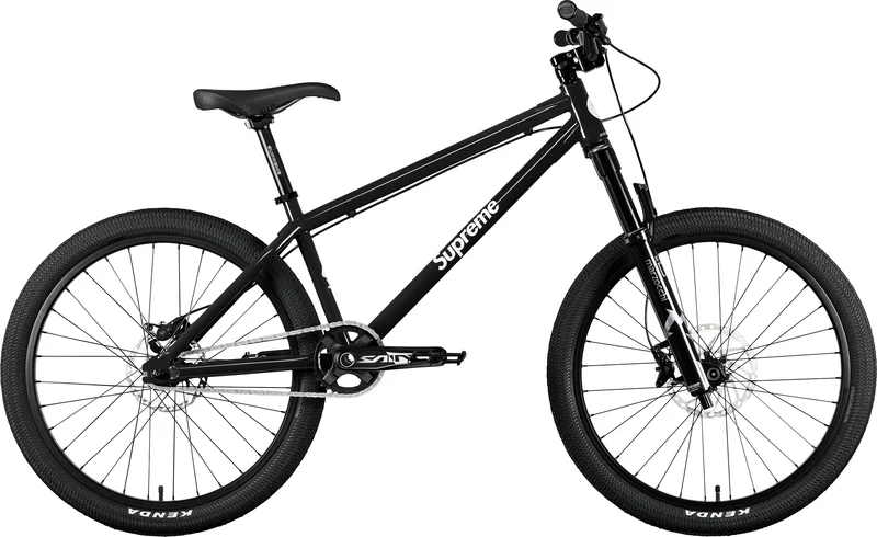 Brooklyn Machine Works 24” steel hardtail Park Bike V4 with custom Supreme components. Shimano Brakes, Shimano Saint Cranks and Marzocchi Dirt Jumper Fork. DMR Pedals included.