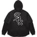 All cotton waffle thermal with pouch pocket. Poly sand knit jersey top layer with button front closure. Tackle twill logo appliqué at chest and graphic at back. Embroidered graphic on hood and athletic label at lower front. Official White Sox™ merchandise made exclusively for Supreme.