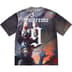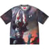 Poly jersey with printed graphic and stripe rib collar. Embroidered graphic on chest and printed logo at back. Original artwork by Frank Frazetta.