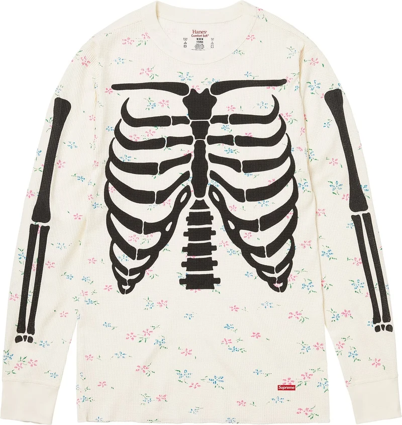 All cotton classic Hanes® waffle thermal L/S top with printed graphic. Stamped logo on lower front.