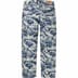 All cotton 13 oz. denim with discharge printed pattern and baggy fit. Classic 5-pocket style with zip fly, single coin pocket, copper oxide rivets and jacron logo patch on back.