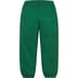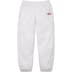 Brushed-back fleece with on seam hand pockets and single back patch pocket. Elastic cuffs and waistband with interior drawcord. Embroidered logo at thigh. Made exclusively for Supreme.