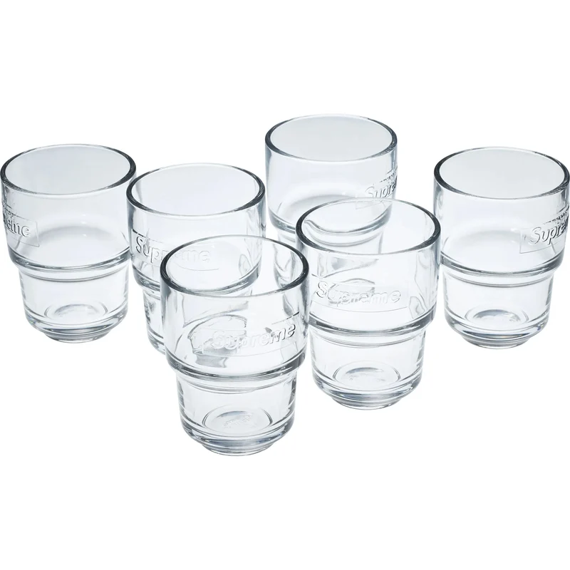 8.5 oz. water glass with molded logo. Sold as a set of 6. Made in France exclusively for Supreme.