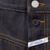 All cotton 14 oz. denim with baggy fit. Slanted front hand pockets and patch pockets at seat. Welt utility pocket at side. Zip fly with double button closure. Leather logo patch at back and woven logo label at fly.