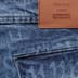 All cotton 13 oz. denim with discharge printed pattern. Slanted front pockets and snap flap back pockets. Snap flap cargo pockets at thigh and lower leg. Button fly closure and leather logo patch at back hem.