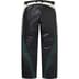 Cowhide leather with taffeta lining. Welt hand pockets and single back zip pocket. Zip fly with button closure. Embroidered logos at lower leg.