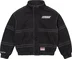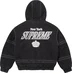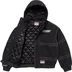 All cotton twill with fill and quilted satin lining. Full zip closure with snap placket. Welt hand pockets at lower front and interior chest pocket. Removable hood with elastic cuffs and hem. Embroidered logo on chest and tackle twill appliqué at back. Embroidered logo at cuff. Made exclusively for Supreme.